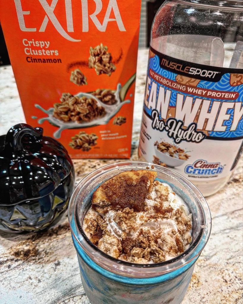 @musclesportusa #cinnacrunch base / cinnamon cake & crispy cinnamon clusters granola mix ins – split w/babes